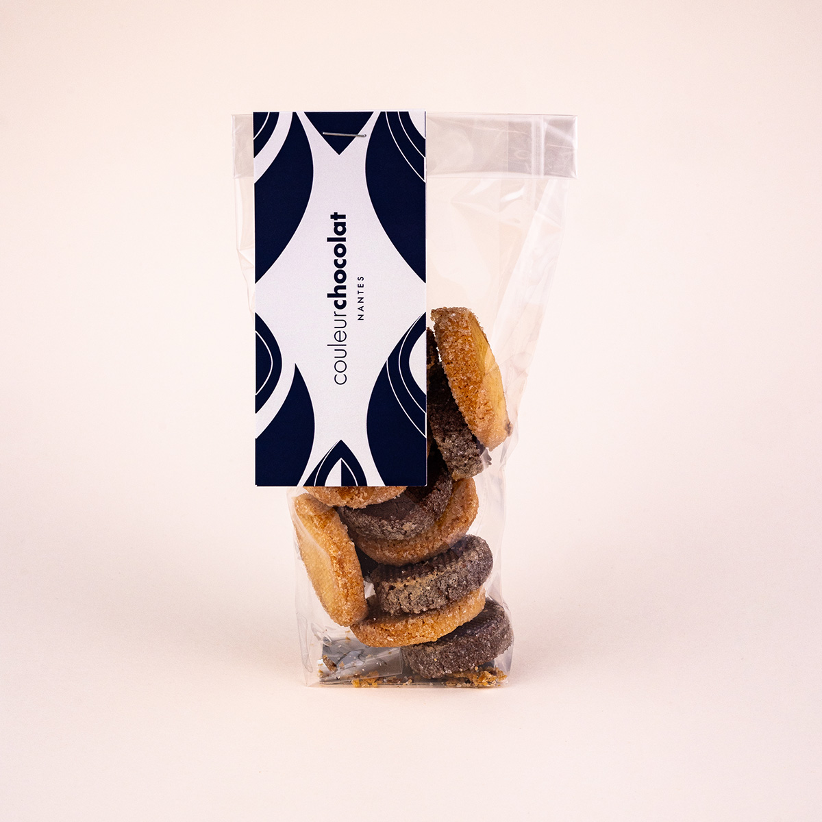 FARINE DE BLÉ, BEURRE doux AOP Charentes-Poitou, sucre, ŒUF, poudre de cacao, sel.Liste des allergènes